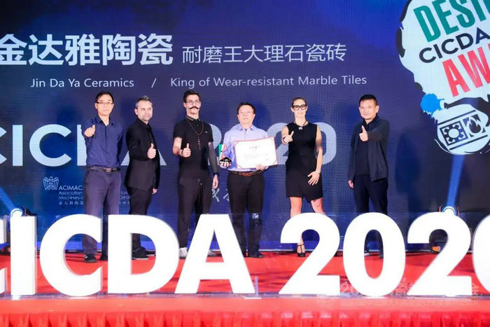 10月16日晚, 2020瓷磚趨勢分享會(huì )暨第八屆中國意大利陶瓷設計大賽頒獎典禮在佛山新媒體產(chǎn)業(yè)園盛大舉行。金達雅陶瓷憑借耐磨王大理石瓷磚,在近百家品牌參評產(chǎn)品中脫穎而出,斬獲2020中意陶瓷設計大獎賽優(yōu)秀獎。金達雅陶瓷事業(yè)部總經(jīng)理賀勇,受邀出席了本次頒獎典禮。以下是活動(dòng)現場(chǎng)掠影:
