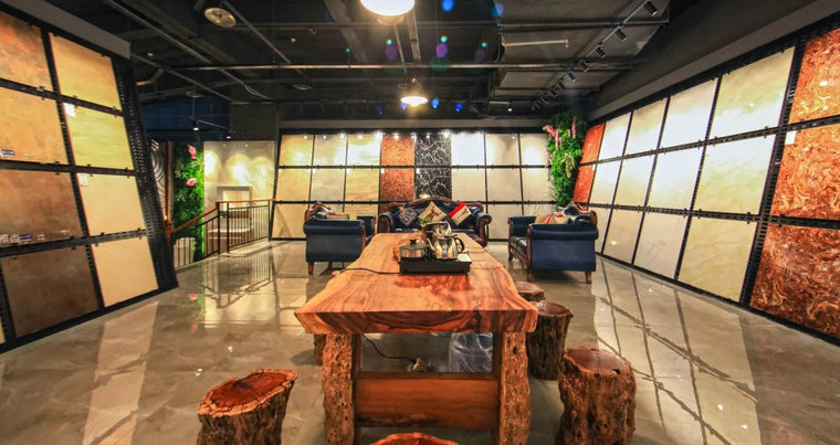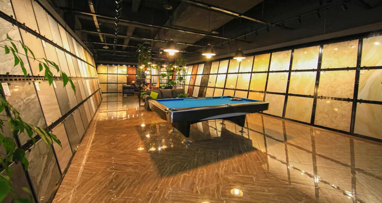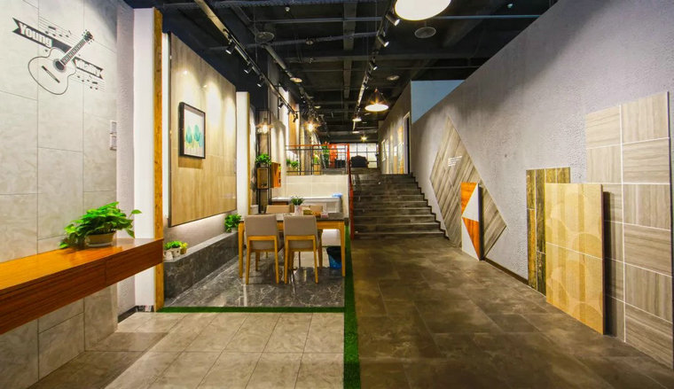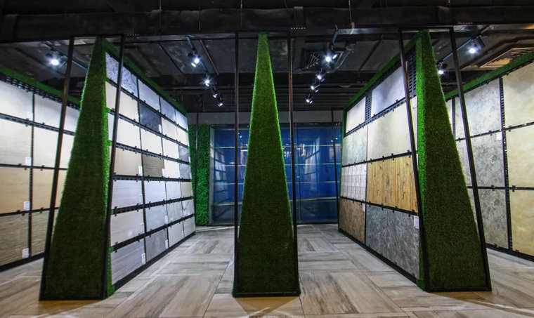 新店的選材區通過(guò)使用多種展架,借助展廳的縱深優(yōu)勢,全規格、全品類(lèi)地展示金達雅陶瓷產(chǎn)品,蔚為壯觀(guān)。